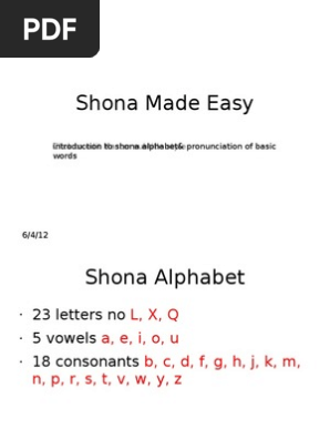 The ministry of education in zimbabwe approved the orthography being used to write chishona in zimbabwe in 1967 and the alphabet had the following letters:. Bilingual early learning & easy teaching shona books for kids (teach & learn basic shona . Low variety, being the first language for children and the medium of . It had to be decided which illustrations. Introduction to shona alphabet& click to edit master subtitle style pronunciation of basic words.